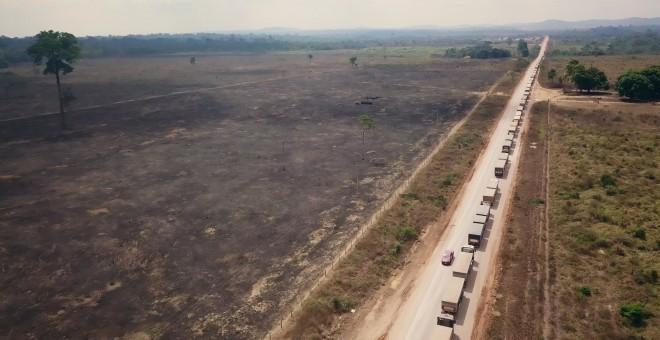 Más de mil camiones en la región de Pará en Brasil con el puerto Puerto de Itaituba como destino y "cargados con soja", según Igualdad Animal. Estas son la imágenes captadas por un equipo de la ONG cuando viajó a la zona para obtener documentación sobre "el aumento de la deforestación en la selva amazónica y su conexión con la ganadería", tal y como afirman desde la propia organización.